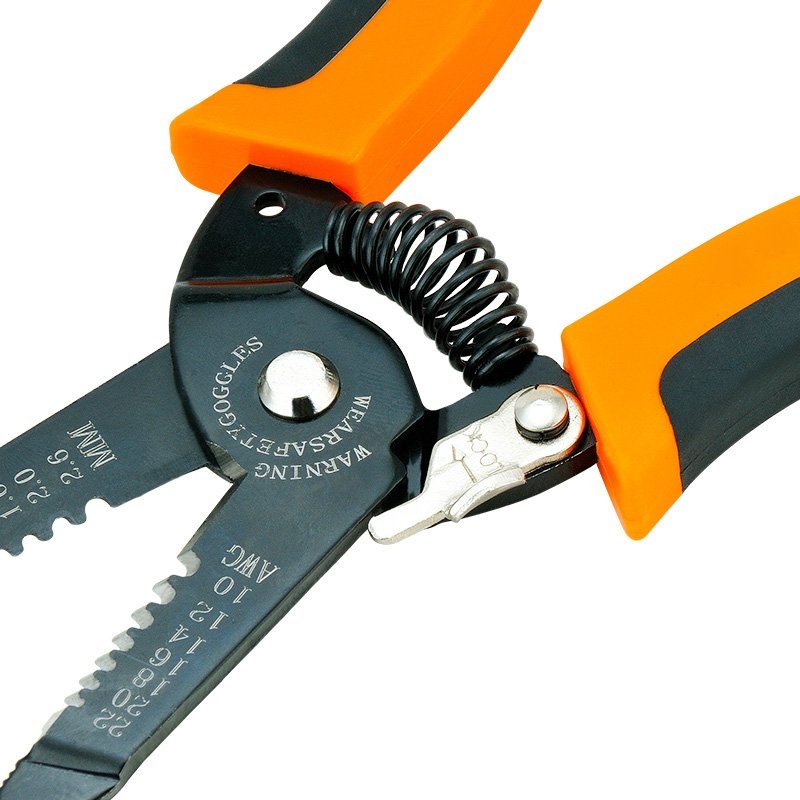 Speciální multifunkční kleště jsou určené zejména pro odizolování a stříhání kabelů / vodičů o průměru 0,6 až 2,6 mm (7“).