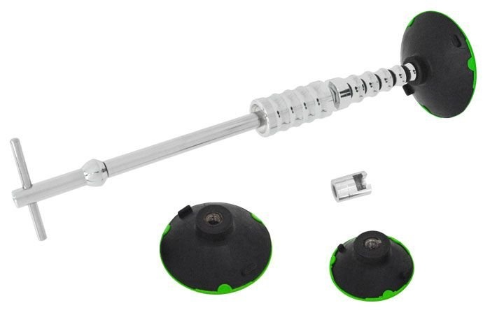 Kluzné vytahovací kladivo se 3 přísavkami Ø 75, 100, 125 mm a se šroubovací koncovkou pro uchycení nalepených vytahovacích adaptérů pro odstraňování promáčklin karosérií. Více informací