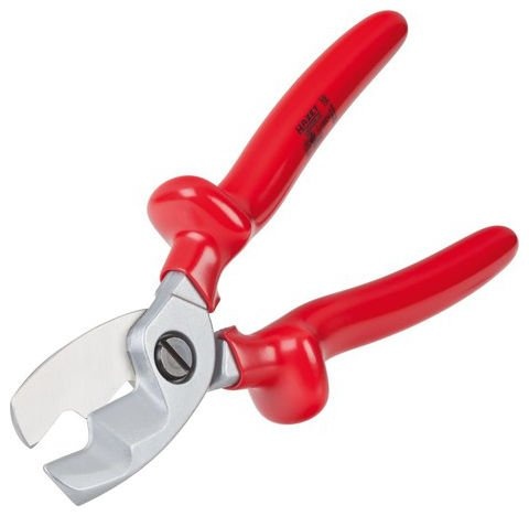 Nůžky s dvojitým břitem na stříhání měděných a hliníkových kabelů pro elektrikáře jsou vyrobeny z vysoce kvalitní oceli. Mají ergonomické izolační rukojeti pro bezpečnou práci až do napětí 1000 V. Samozřejmostí je perfektně vyrobený kloub s velmi úzkou tolerancí rozměru otvoru pro čep. Délka 208 mm.