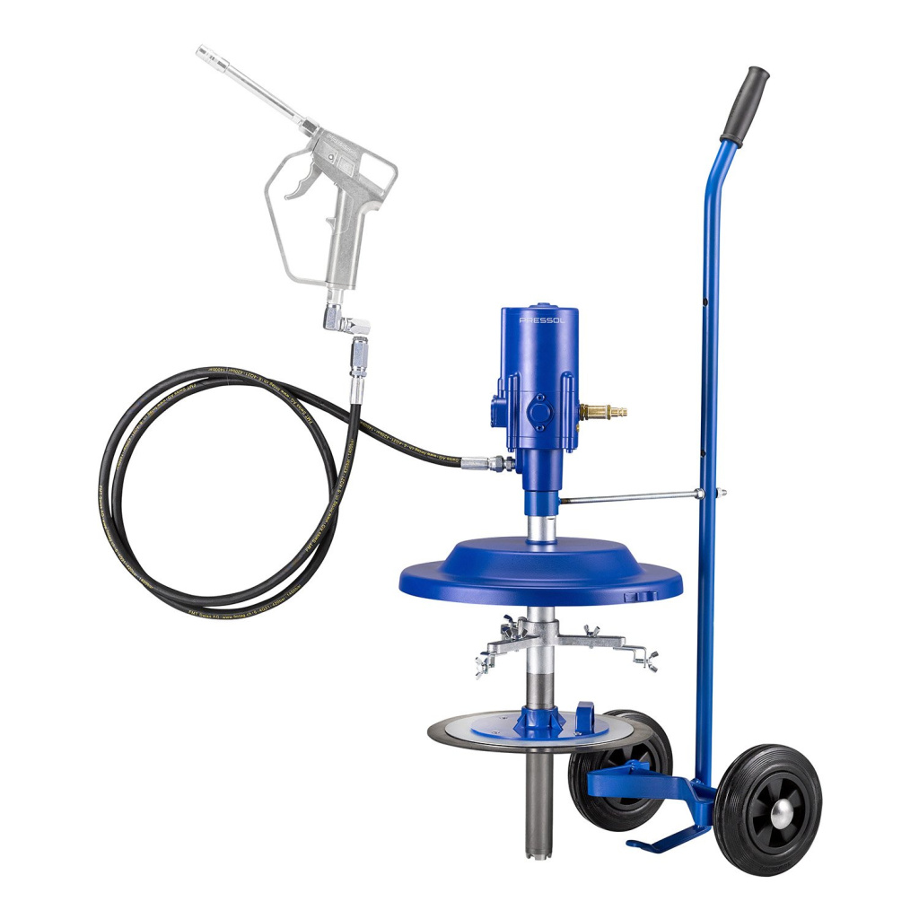 Pojízdný pneumatický mazací přístroj pro plastická maziva v baleních/kbelících 15 kg (Ø 240 - 270 mm) je vybaven vynikajícím pneumatickým vysokotlakým čerpadlem na plastická maziva (mazací tuky) 50:1. Jeho patentovaná konstrukce poslední generace garantuje extrémně dlouhou životnost, vysoký výkon, malou hlučnost a zcela mimořádnou spolehlivost i za nejtěžších provozních podmínek. Má minimální počet pohyblivých dílů, což usnadňuje případný servis.