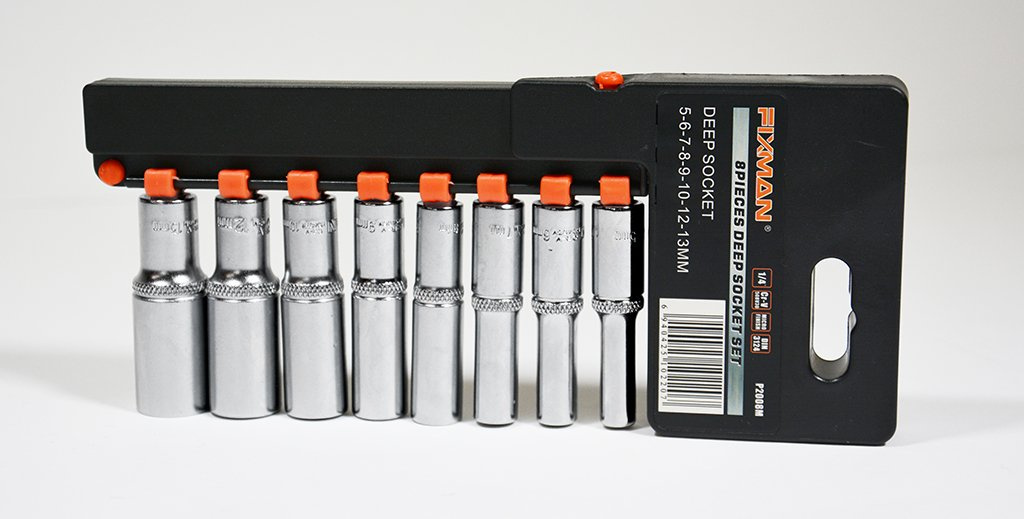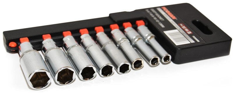 8-dílná sada dlouhých nástrčných šestihranných hlavic 1/4", 5 - 13 mm.